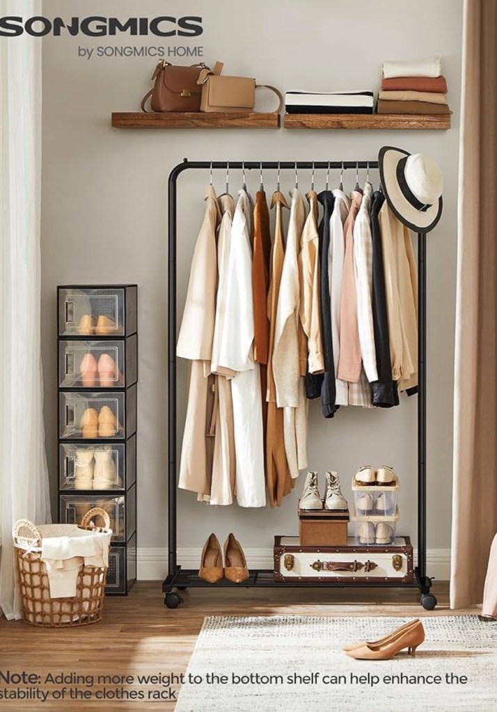 At times, I have a hard time deciding what to wear when I’m staring into my closet, so I decided to buy this clothing rack to throw some outfits together and mix things up a bit.