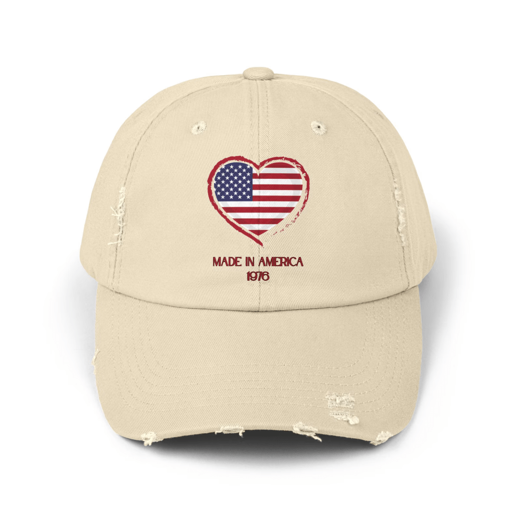 Show your patriotic spirit with this heart-themed hat featuring the American flag, perfect for Summer!